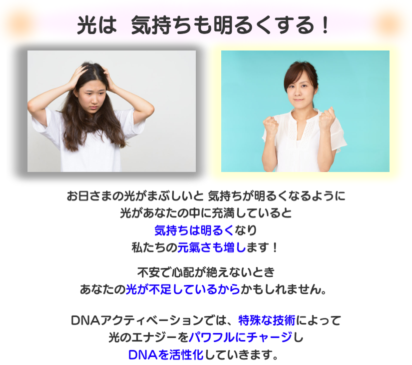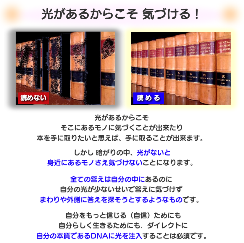 ★ひろよ: DNAアクティベーションは、たくさんの光がその方の中に入っていきます。その方の中にあった感覚が目覚めていくことも多いようですね。